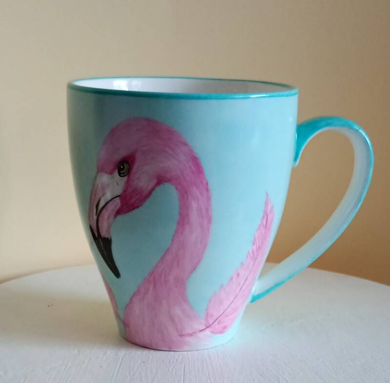 Auftragsarbeit Flamingo Tasse nach Kundenwunsch